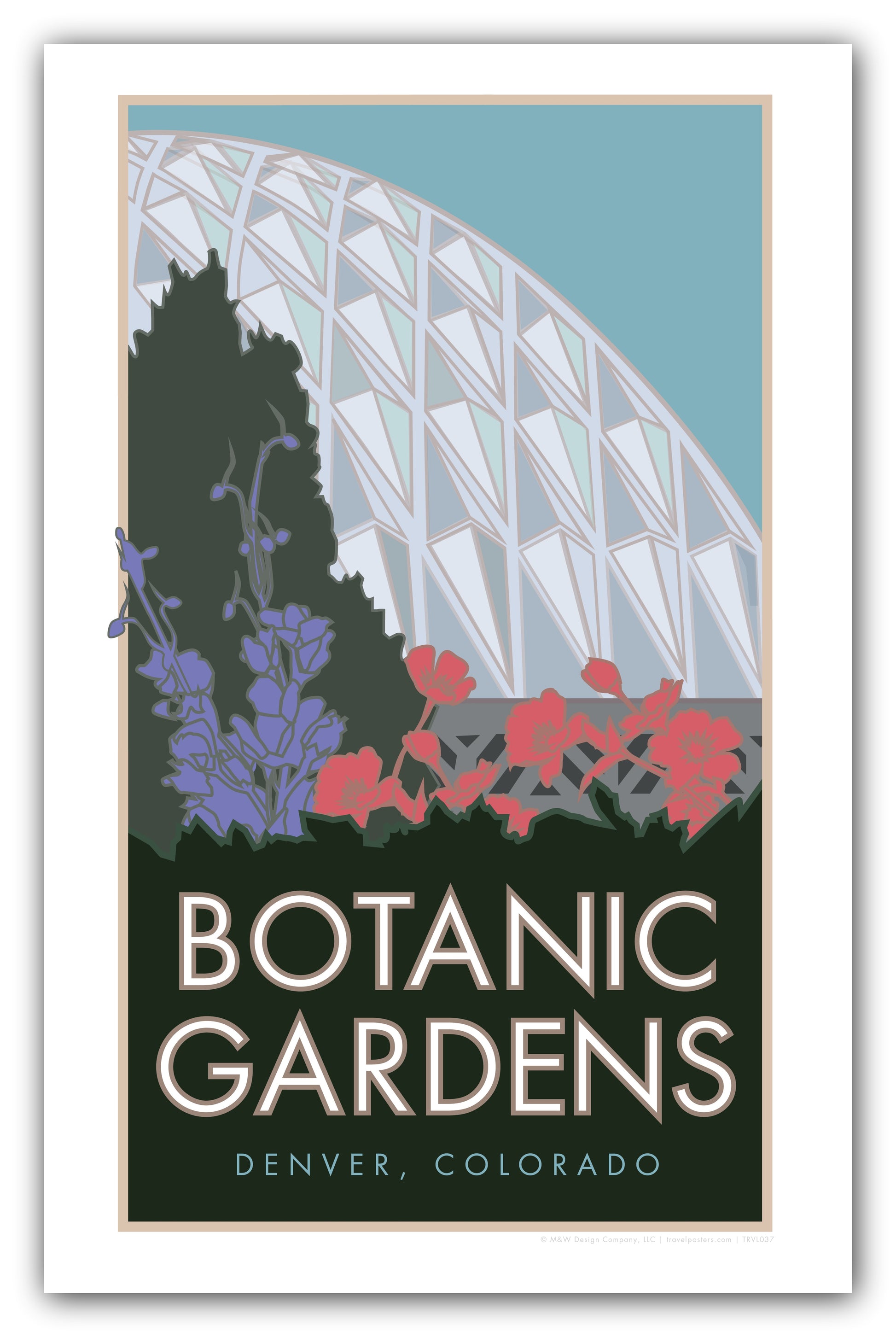 An abundance of native and rare flora spring forth each year around the grounds of the Denver Botanic Gardens. Our poster art print features flora and the mid-century modern architectural design of the Conservatory, a gem in the city of Denver, Colorado in the Cheesman Park neighborhood.
