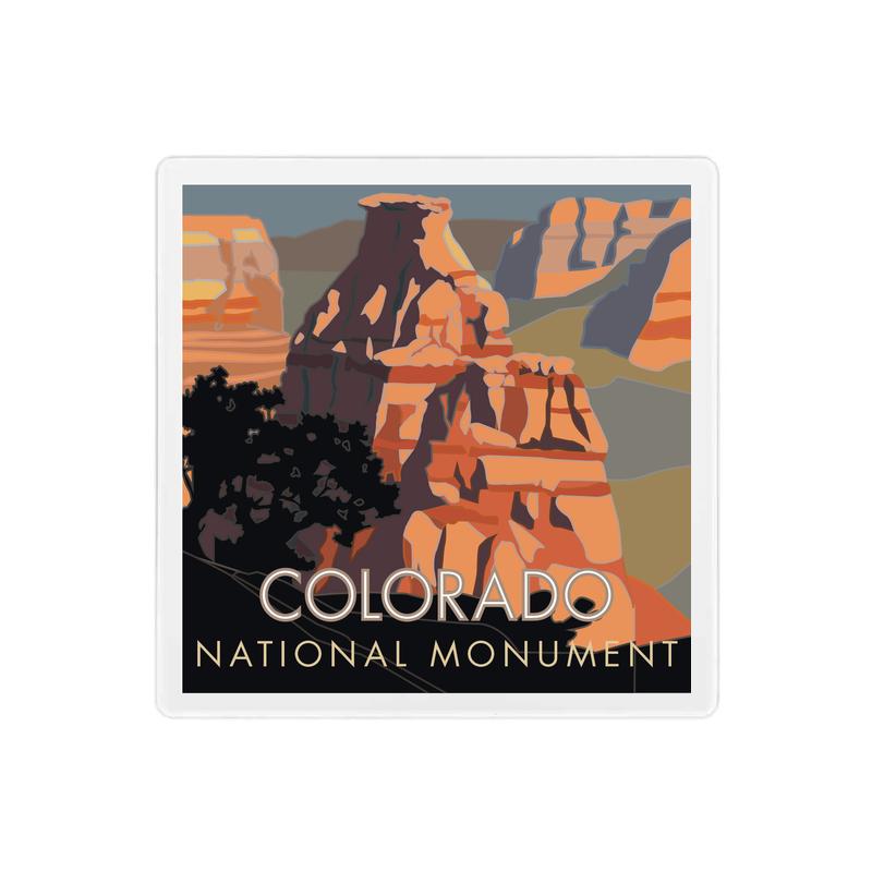 The unique formation called Kissing Couple takes center stage in our unique Colorado National Monument #3 design. We feature this recognizable formation with darks of desert varnish and sandstone stratum in yellows, tans, and reds. Our 4.25″ x 4.25″ ceramic coaster designs are hand-pressed in our studio on to glazed ceramic tiles. Your coaster arrives with a protective cork affixed to the back and is ready for display.