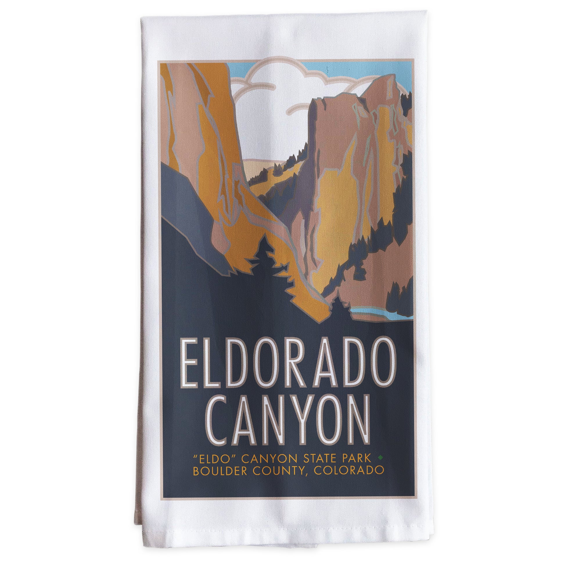 A popular climbing location is a state park south of Boulder, Colorado. Eldorado Canyon State Park offers a multitude of technical climbing routes among the sandstone cliffs in the area. The scenic South Boulder Creek runs through the canyon providing a cool respite for hiking, mountain biking, trail running, or picnicking in the area. Manufactured with high-quality, full-magnet backing and crimped corners, yOur Tea Towels arrive ready for display in your store or visitors center.