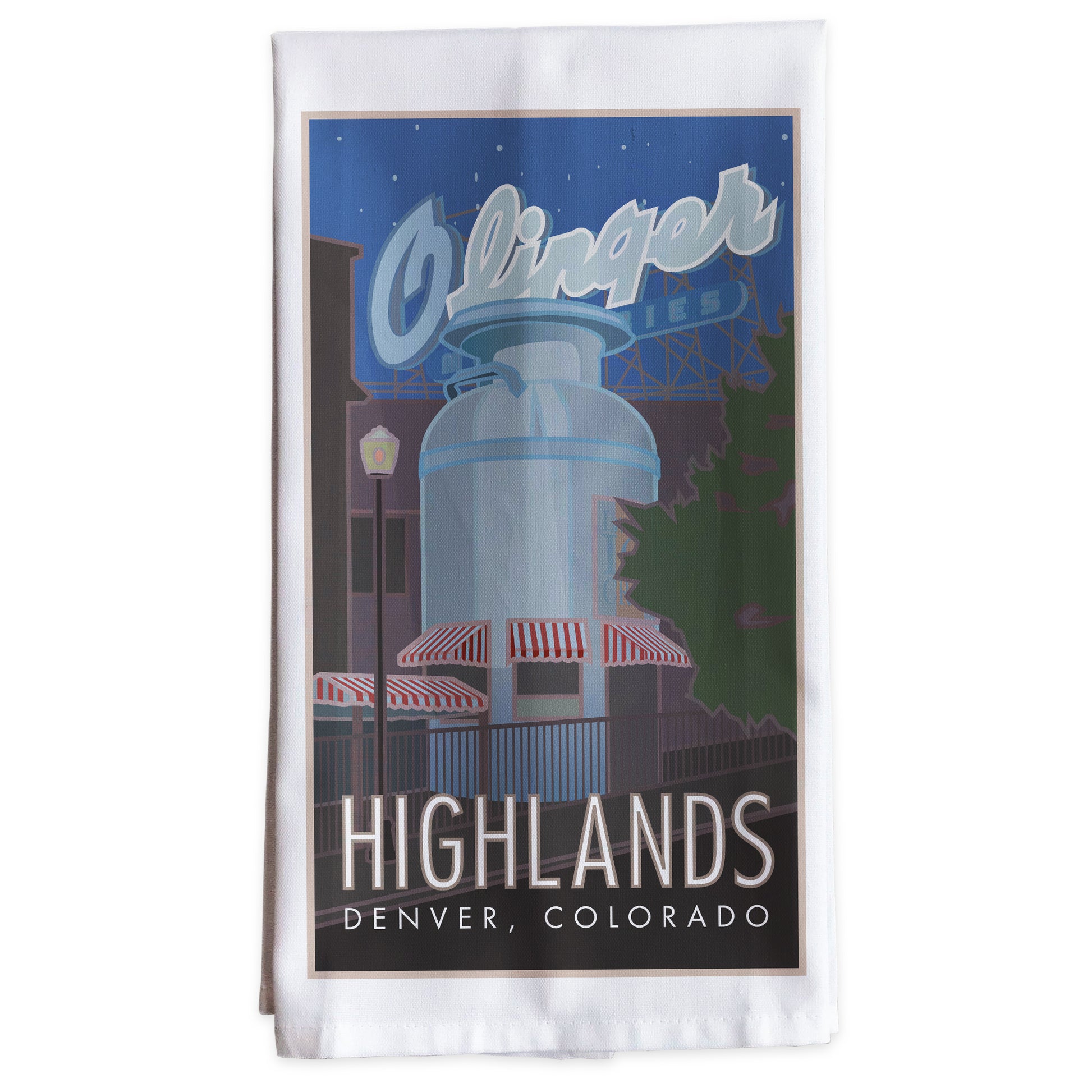 Our Tea Towel design of historic “Highlands” captures the merging of old and new in this Denver, Colorado neighborhood. Streets filled with mid-century moderns and historic bungalows, as well as eateries and ice cream, bring an energetic vibe to the area.