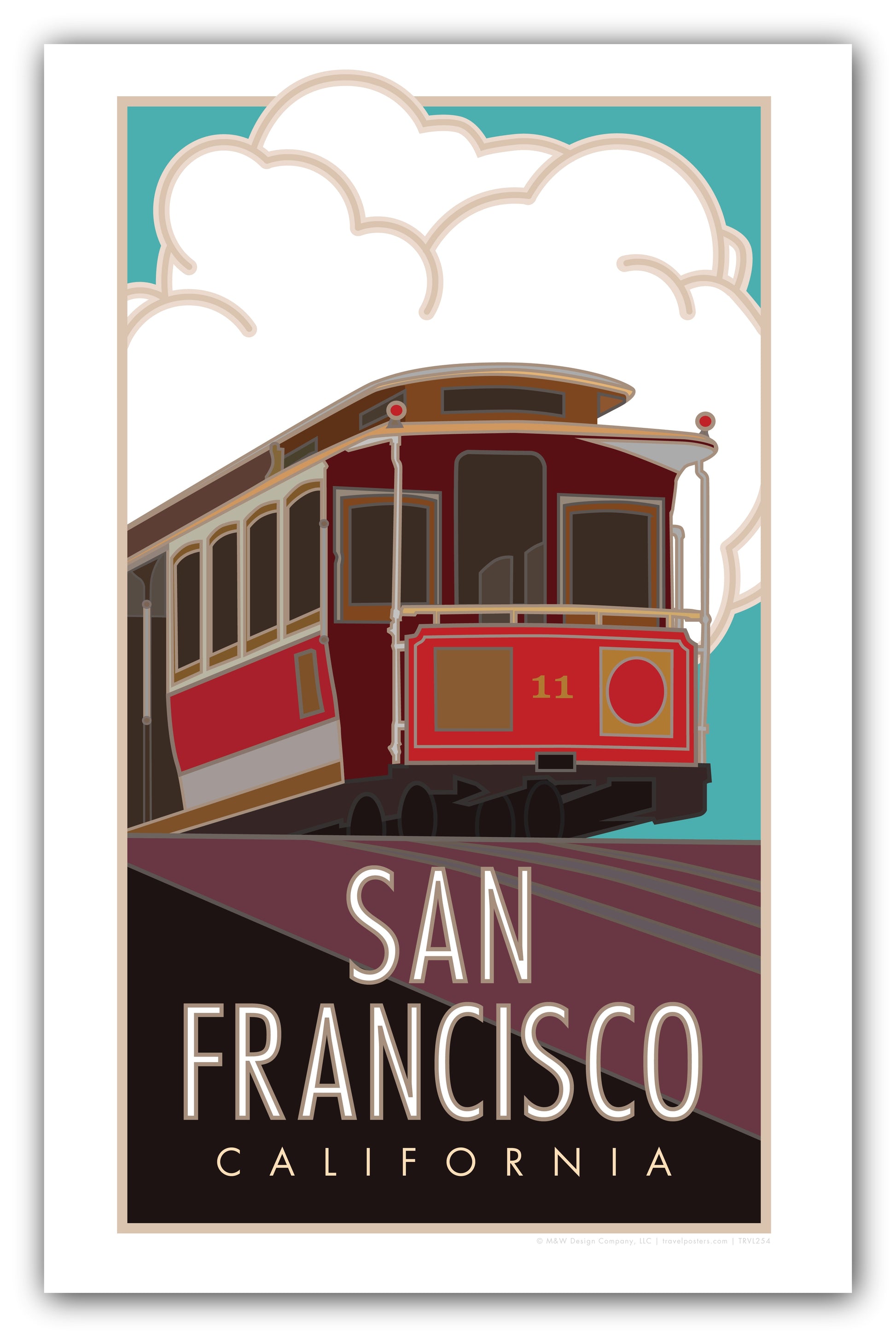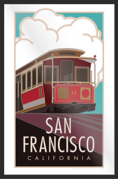 This design features the Powell/MasonLine on one of San Francisco's iconic cable car system. Part of our San Francisco Collection Series, this route starts near Union Square, passes mansions and homes in Nob Hill, then drops down near Chinatown and ends at its turn-around terminus within blocks of the bay and Fisherman's Wharf, Ghirardelli Square, and the National Maritime Museum. Bring back a memory of your trip and travels with our poster art print.