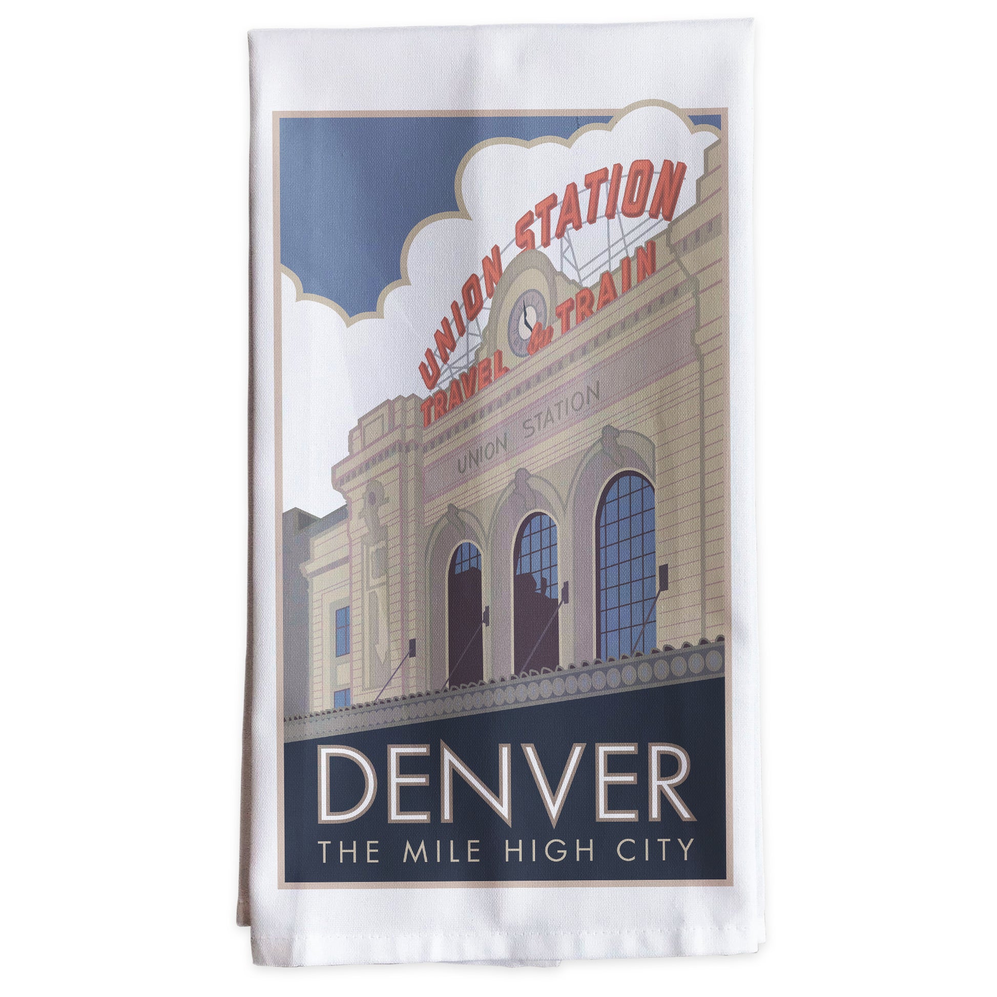 Whether you stop for a stay or are traveling through, our Denver Union Station series has a view for you.This tea toweldesign captures the vintage-style colors of a summer afternoon. Each day billowing clouds form along the Rocky Mountains west of the Mile High City of Denver, Colorado, bringing cool evenings to the nightlife of Union Station at this travel and entertainment hub of LODO.