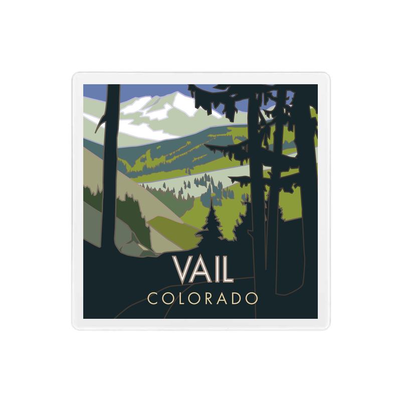 When the snow melt is complete, hikers and mountain bikers return to the Colorado high-country for days in the Blue Sky Basin. Wildflowers abound in our original Vail Basin Summer design, welcoming all to summer days high above the Vail Valley. Appreciate the views and anticipate “white pow” ski days to come. Our original designs are pressed in our studio on to glazed ceramic tiles. Your coasters arrive with a protective cork affixed to the back and are ready for display.